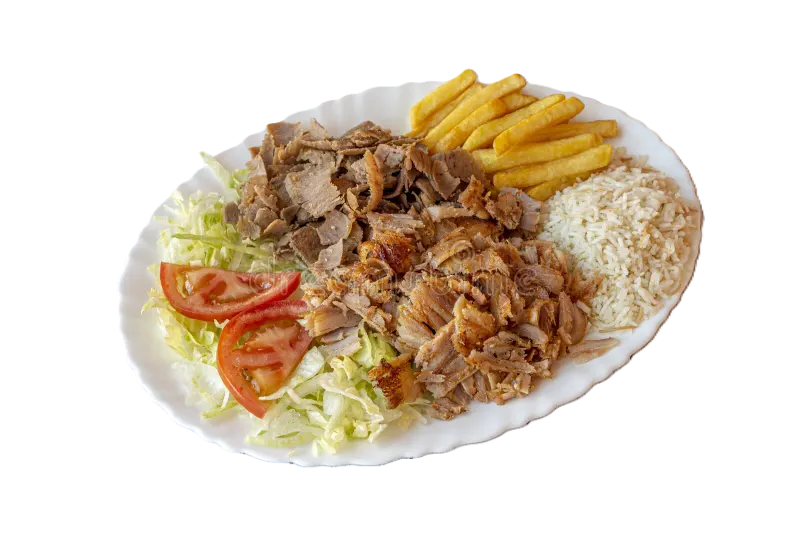 Kebab bandeja + patatas + ensalada + pan + refresco